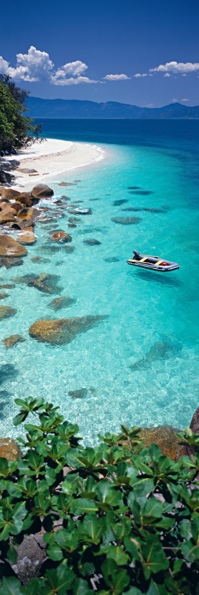This image of Nudey Beach on Fitzroy Island is the epitome of a perfect day in a perfect tropical paradise. The endless turquoise of the Coral Sea, the stretching expanse of summer skies, and the seemingly suspended rubber dinghy paint an unforgettable picture. Not wanting to disturb the equilibrium of the scene by setting up my equipment, I quickly fired off a series of hand held shots. I felt at any moment something could happen to shatter the fragile peace. Satisfied I had got my shot, I relaxed—and the perfection just went on and on,