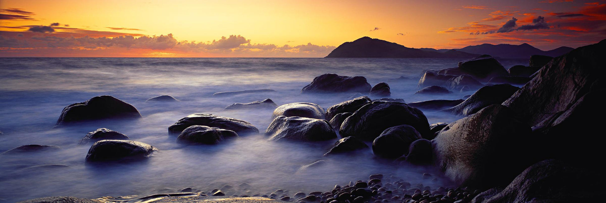 First light on the tranquil island paradise of Orpheus on the Great Barrier Reef, and the days first rays brush the horizon with a delicate touch. This is one of my favourite places in the world, and I really wanted to create an image that encapsulated the true feeling of peace and harmony of the island. I used a long exposure, which I knew would turn the gently coursing waves into a surreal blanket of mist. The beautifully rounded boulders in the foreground have been smoothed from hundreds of years of crashing waves and they rise from the shallows like guardians of the beach.