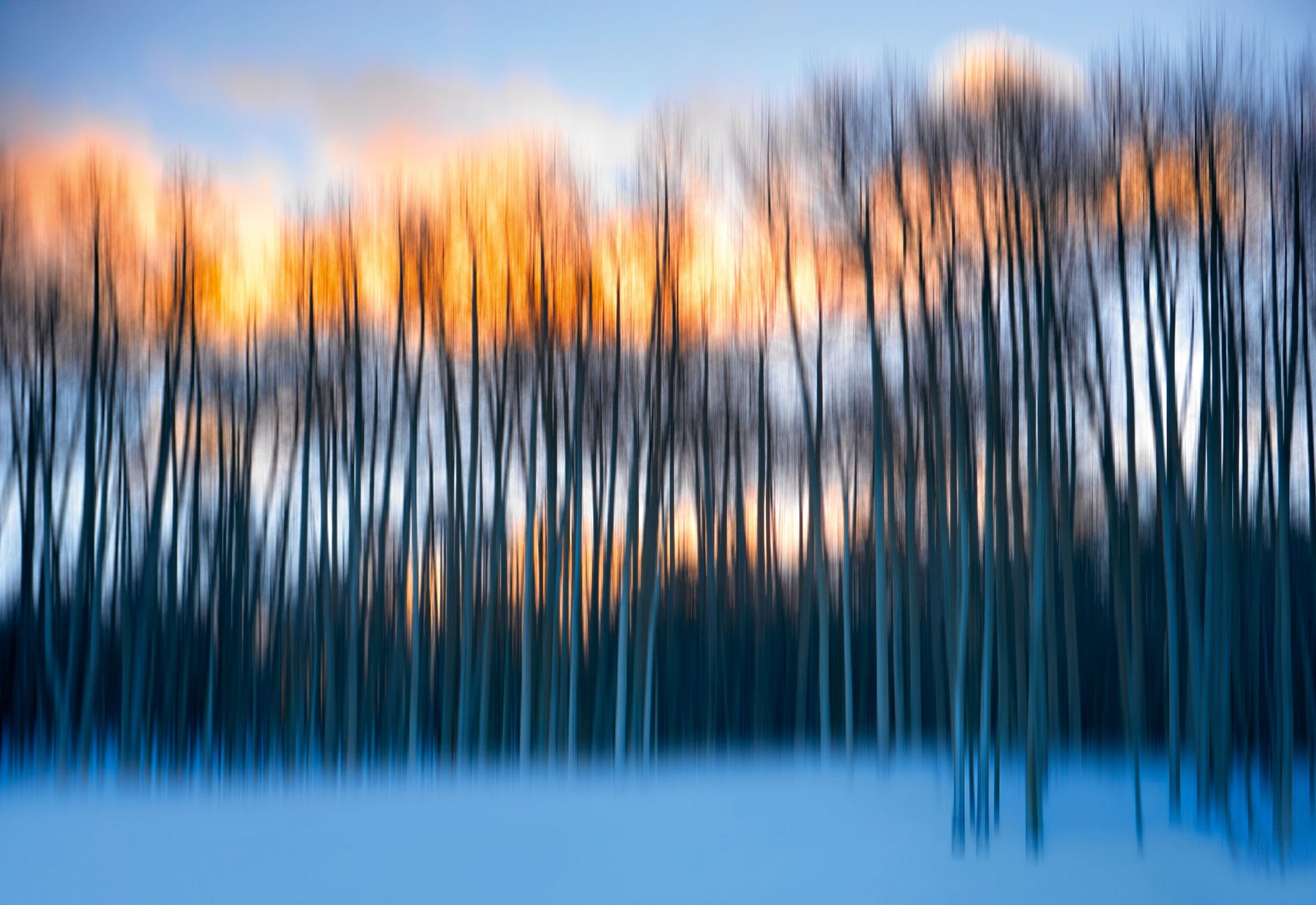 I withdraw reality and let you fill it with your own emotion, opening a whole new world of visual pathways. Absorb the image... The Illusion takes over... Sunlight becomes more and more vivid filling the blue forest with warmth... Misty lines sharpen ... Finally, the trees start moving caressed by the wind gently drifting through their branches... Time is no longer relevant. Witness pure creation...