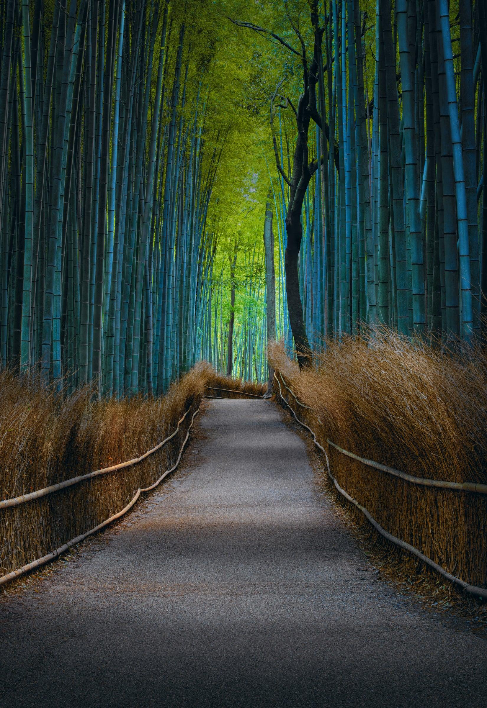 Towering stalks of bamboo rise in perfect harmony, creating a natural cathedral within Kyoto’s Arashiyama Bamboo Forest. Soft, diffused light filters through the dense canopy, casting ever-shifting patterns along the winding path. A place of serenity and stillness, the forest hums with the whispers of rustling leaves and the unseen presence of history. Captured in a fleeting moment of quiet perfection, this image reflects the tranquility and mystique of one of Japan’s most enchanting landscapes.